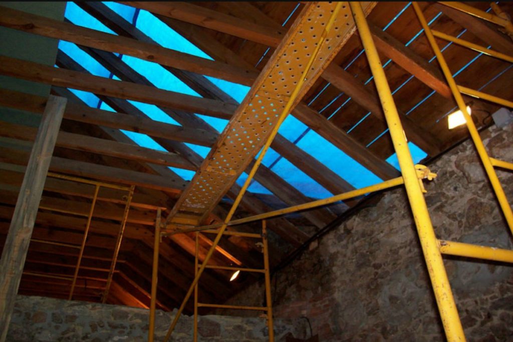 A causa de las lluvias y los fuertes vientos producidos en la zona, se producen importantes daños en la cubierta de pizarra los cuales provocan numerosas filtraciones dañando la estructura de madera, debiendo de sustituir la cubierta completa.